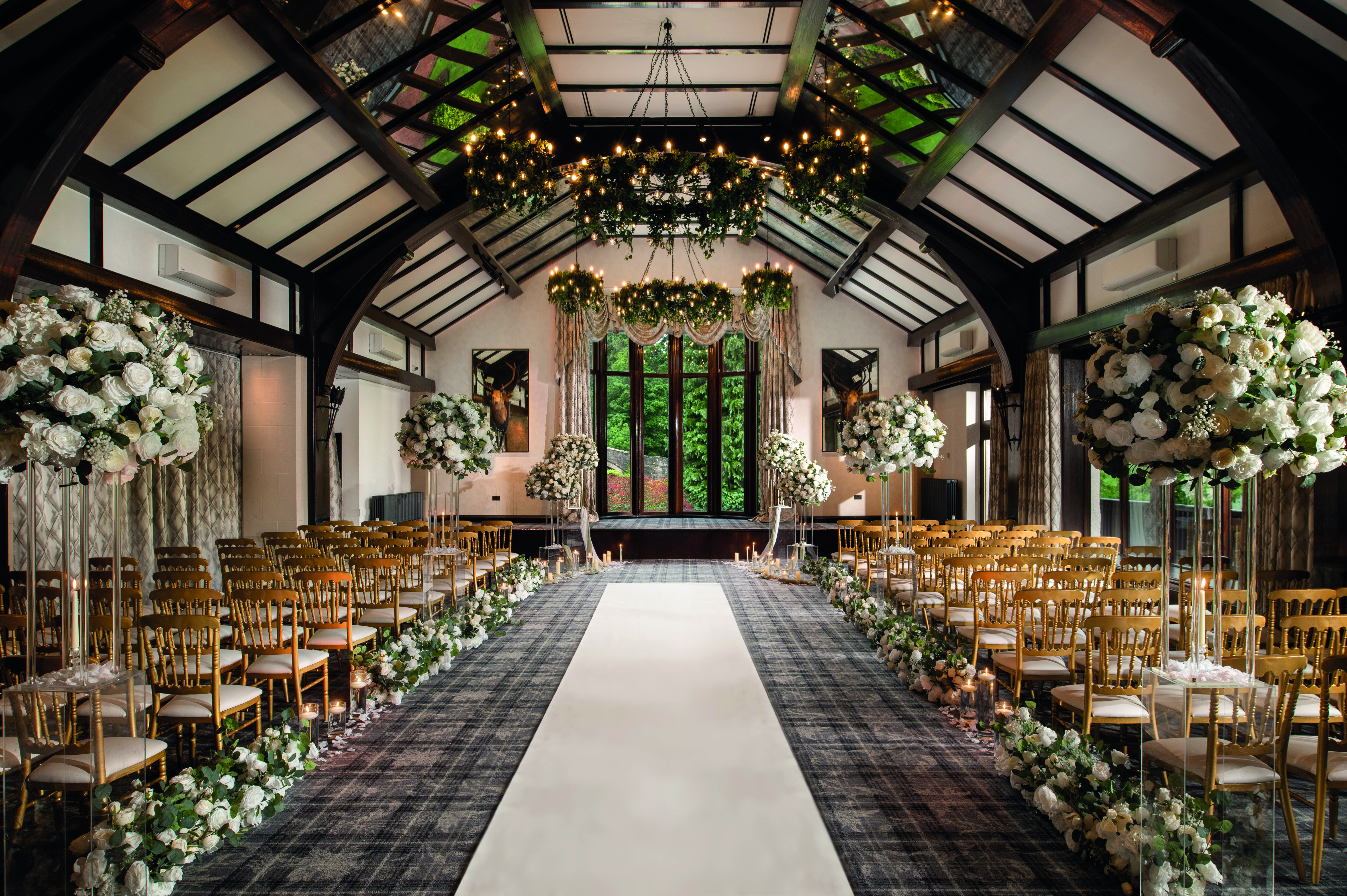 Lochside House Hotel & Spa, Ayrshire – Nestled beside the picturesque Loch of the Lowes and framed by the Afton Hills, this tranquil venue combines natural beauty with sparkling chandeliers, elegant interiors, and a true wow factor.
